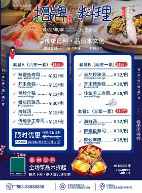图司机为您找到10000日料传单模板,提供日料传单图片素材、日料传单高清背景图片、 日料传单设计模板、 日料传单PPT模板、日料传单音视频模板等免费下载服务,包含JPG、PNG等多种格式,更多日料传单相关素材、海报、图片、设计元素、插画、音视频模板、尽在图司机。